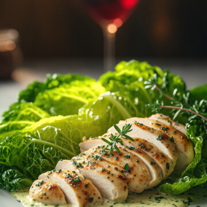Салат ромен с куриной грудкой и соусом цезарь