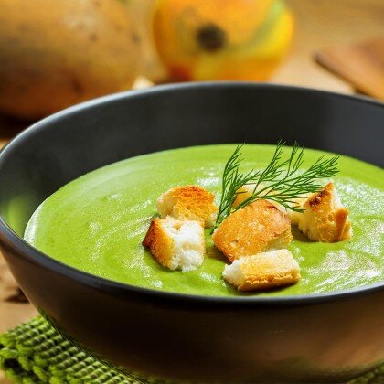 Крем суп из брокколи на кокосовом молоке и мясом краба