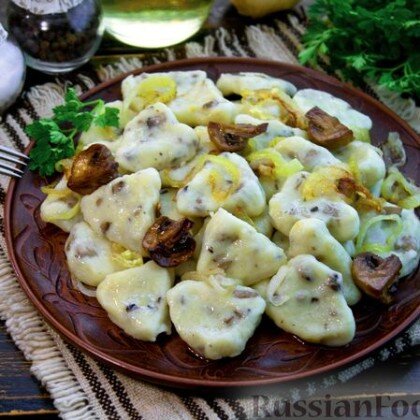Пельмени дальневосточные с гребешком, креветкой и соусом из шпината