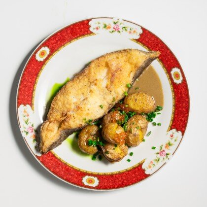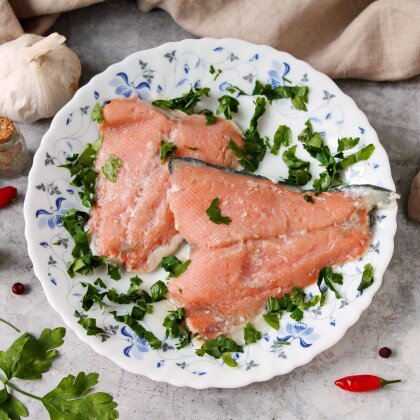 Спинка лосося су-вид с пюре из корня сельдерея и цитрусовым соусом