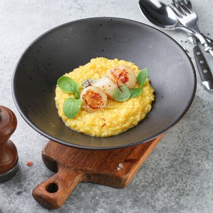 Говядина вырезка "Тендерлойн", картофельное пюре, лук репчатый, лук порей, грибы, помидоры, огурцы маринованные, зелень, сливки, масло растительное, масло зеленое, горчица зернистая