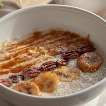 Овсяная каша с соленой карамелью, бананом и орехом пекан