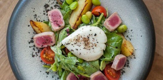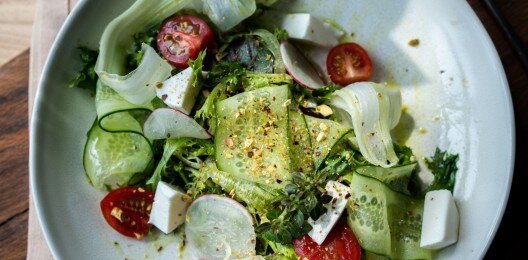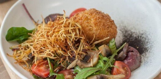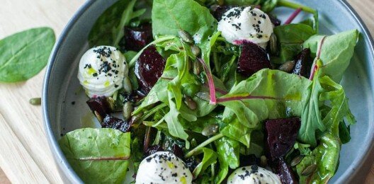 Салат с карамелизированной печенной свеклой и сырным кремом