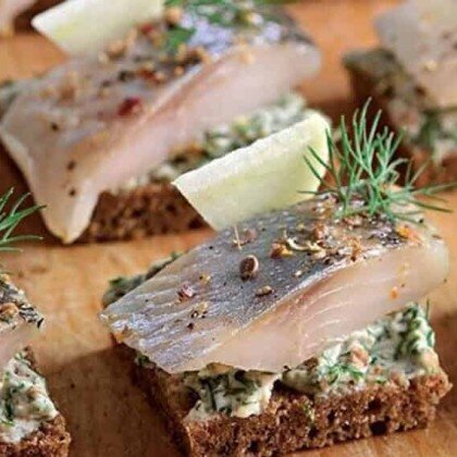 Бутерброды со шпротами на бородинском хлебе с соленым огурчиком и сливочным сыром