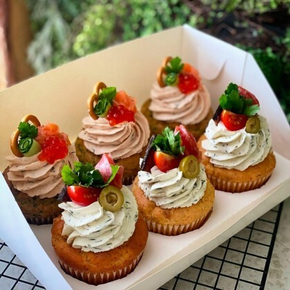 кекс с ветчиной и сыром/ со сливочным кремом с зеленью