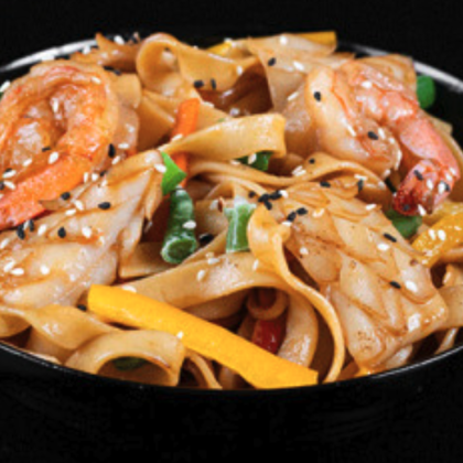 Лапша "удон", курица, перец болгарский, морковь, лук репчатый, сухой чеснок, кунжутные семечки, зеленый лук, соус "устричный"