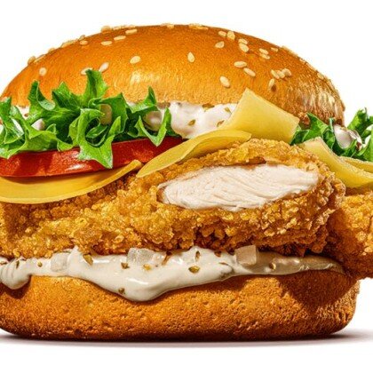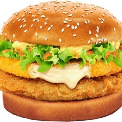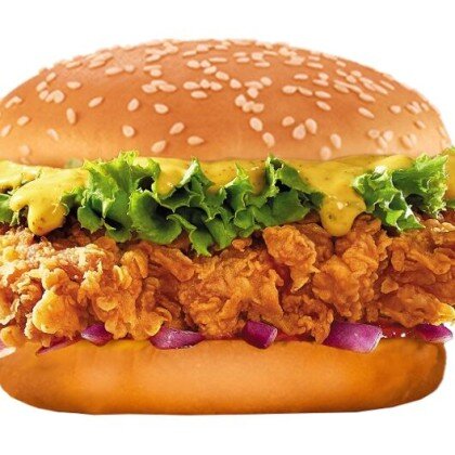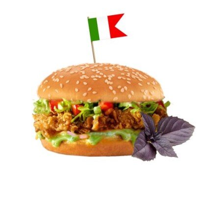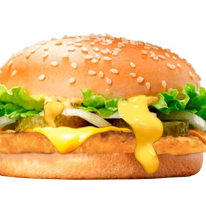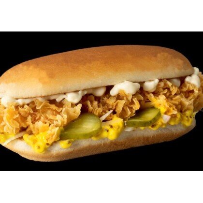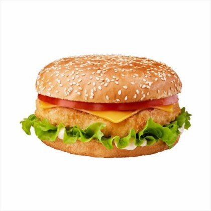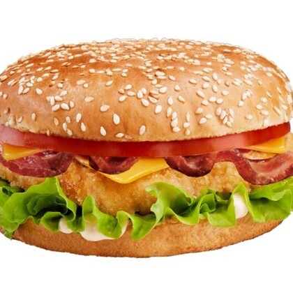 Белая булка, котлета куриная, соус мексиканский, соус "Острый Чили", сыр, овощи. Булка 125 мм.
