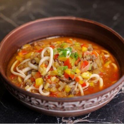 Говядина, перец, кимча, чеснок, сельдерей, лапша лагман