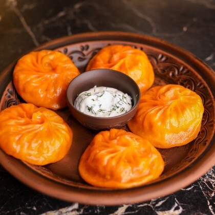 Рубленая баранина, курдючный жир, лук. Подается со сметаной или лазой (перцовая паста)