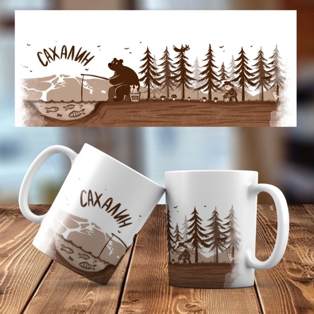 г. Южно-Сахалинск и герои. Сепия . Керамическая кружка № 011