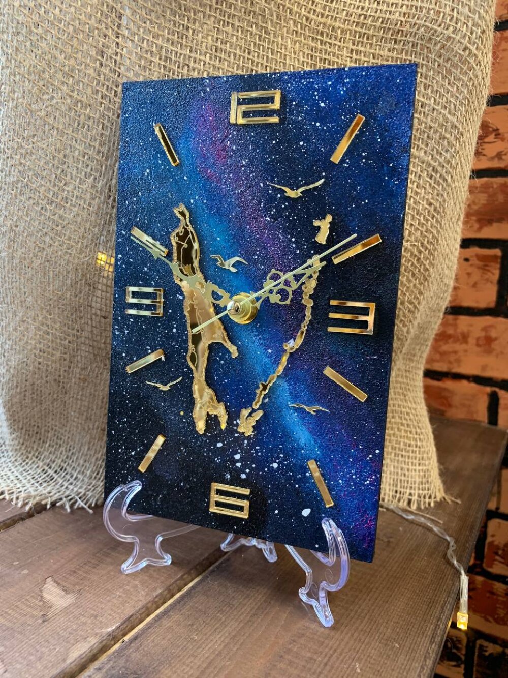 Часы имеют покрытие краской, но НЕ залиты эпоксидной смолой, что сохраняет «дышащую» фактуру матовой живописи.