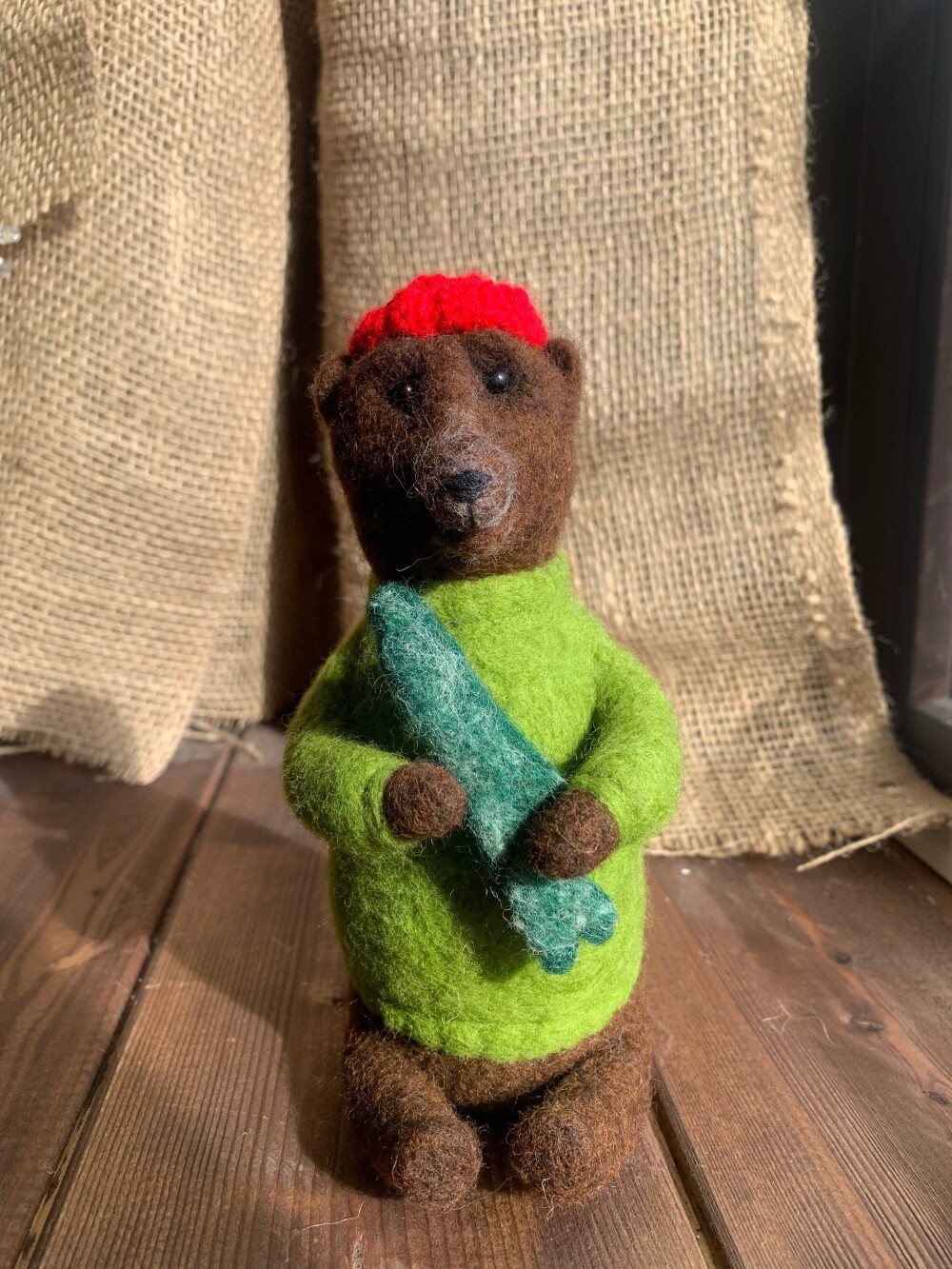 Медвежонок выполнен в технике сухого валяния из натуральной овечьей шерсти