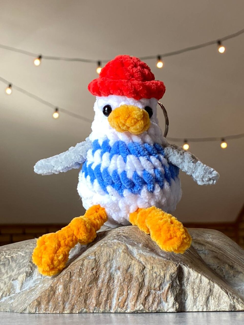 Чайка выполнена из плюшевой пряжи. Ручная вязка. Можно использовать как брелок или снять карабин и получится просто милая игрушка.
