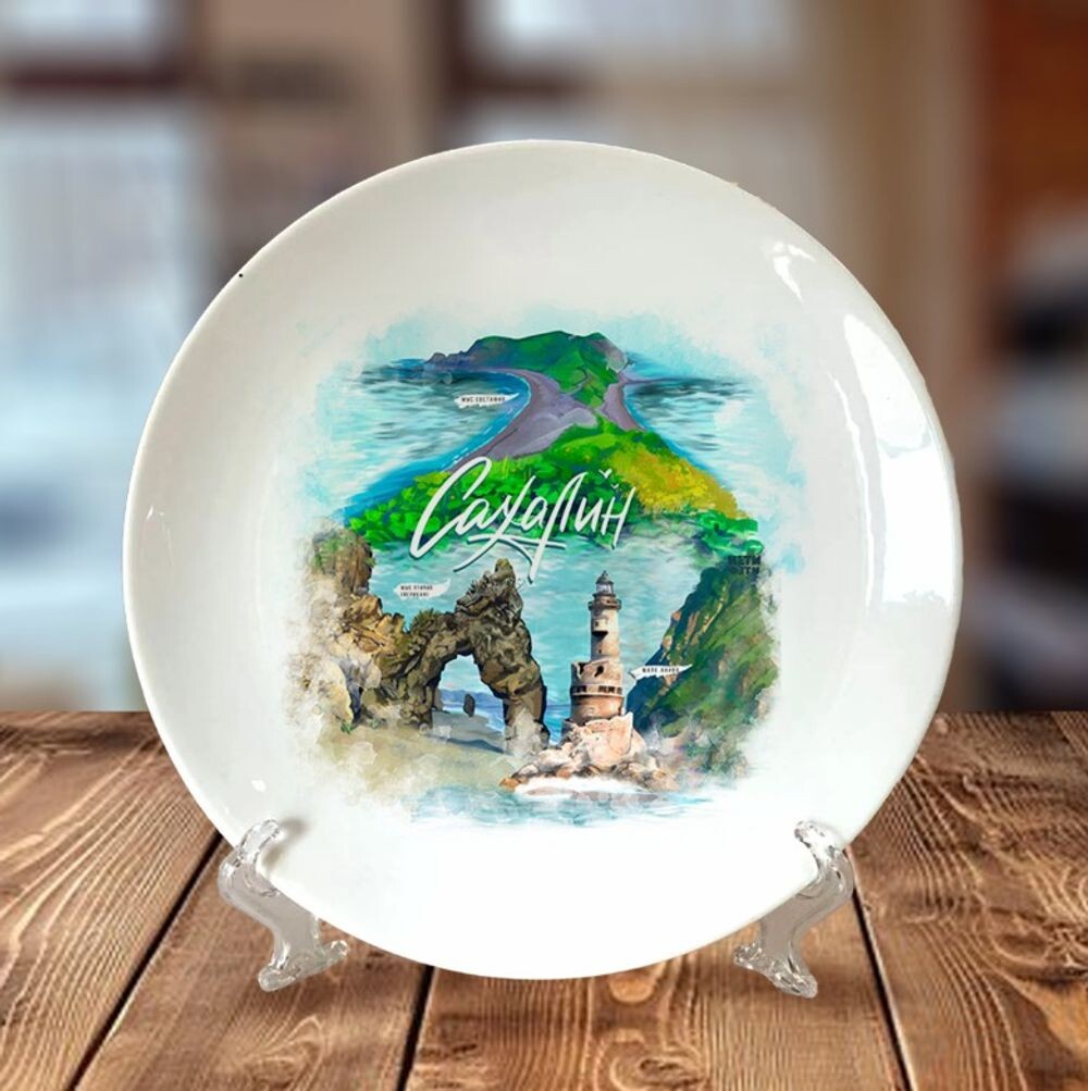 Тарелка керамическая белая с сублимационной печатью.