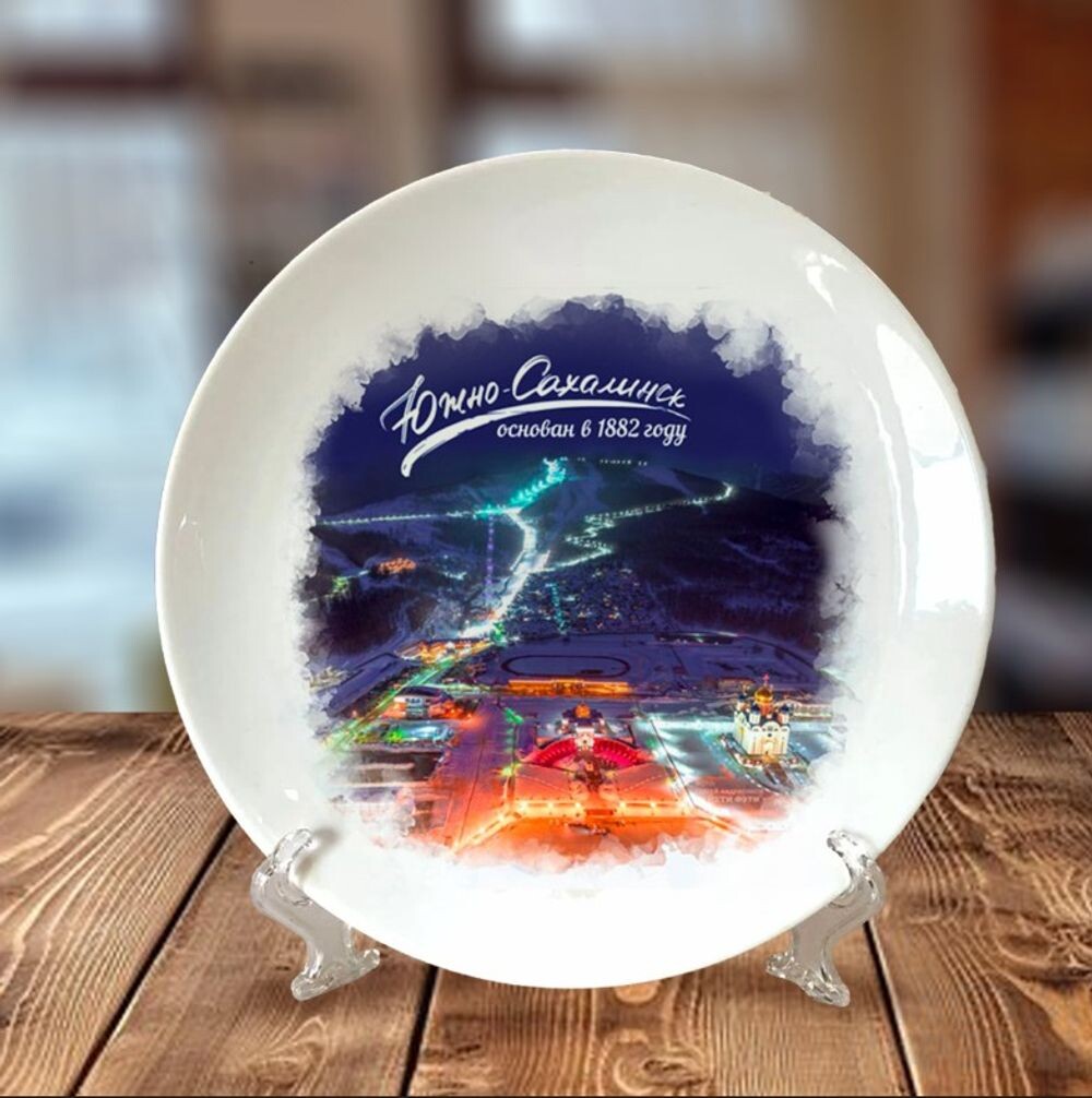 Тарелка керамическая белая с сублимационной печатью. Изображение: Сублимация